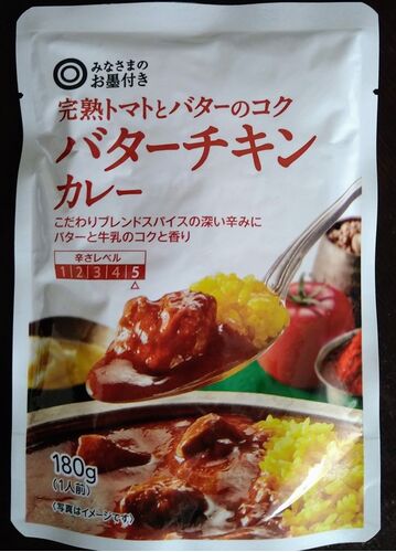 今日は西友のみなさまのお墨付きのレトルトカレー、 完熟トマトとバターのコク「バターチキンカレー」です。 ちゃんと見ずに買ってしまい、後から辛さレベル5ということに気付きました。 でもバターと牛乳のコクでちょっと緩和されてるかも?という期待あり…