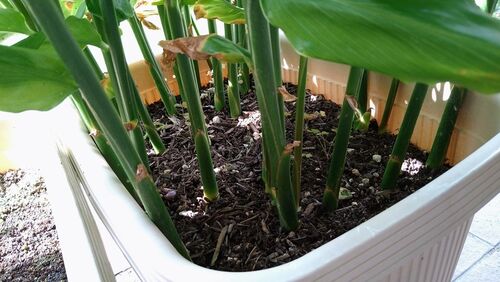 実家から分けてもらったみょうがをプランターに植えて二年目。 一年目はこんな感じでした。 6本くらい生えている程度。 そして二年目の今年はすごいことに!↓ 夫が「何これ、キモッ」っていうくらい葉が増えてしまいました。 肝心のみょうがの収穫量は昨年…