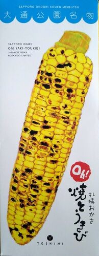 今日のおやつは「札幌おかき oh!焼とうきび」です。 北海道土産の中で好きなお菓子のひとつです。 18g 6袋入り。焼とうきび型のリーフレットが入っています。 リーフレットの裏には商品の説明などが書かれています。↓ さっそく開封。 開けた途端「すっげー…