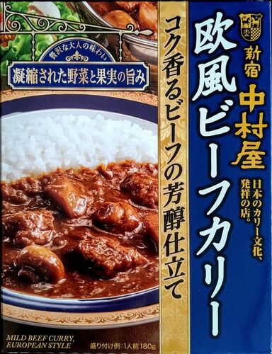 今日のレトルトカレーは 新宿中村屋「 欧風ビーフカリー」です。 日本のカリー文化、発祥のお店なんですね、 ■商品情報(パッケージより)■ ・ 牛肉とごろごろ具材・ 芳醇な味わい・ 濃厚な甘みと香り・辛さレベルは3・カロリーは1食(180g)当たり264kcal …