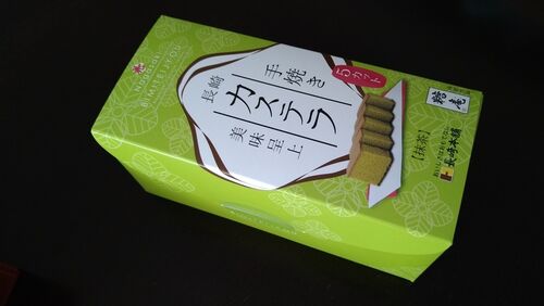 今日のおやつは抹茶味の「長崎手焼きカステラ」です。 先日、藤崎で開催されていた大九州展でチョコ味と一緒に購入しました。 さっそく箱から出してみます。 カット済み、5切れ入りです。 底の紙をめくってみると 底ザラメがたっぷり! それではまず上の方…