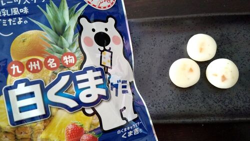 今日のおやつは「白くまグミ」です。 ■商品情報■ ・3種のフルーツ入り・練乳風味のグミ・1袋(40g)当たり133kcal 袋を開けると練乳の甘い香りがします。 内容量は40gで、数えてみたら8個入ってました。 表は白くま感があまりない感じ。 裏返してみ…
