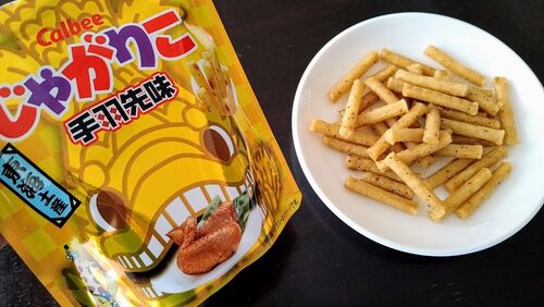 今日のおやつは「じゃがりこ 手羽先味」です。 夫が買ってきてくれた名古屋土産。 実物そうでもないのに、写真で撮ると金のシャチホコパッケージの圧がすごい。 ■商品情報■ ・ピリッと旨辛胡椒味・スパイシーな味わいがクセになるおいしさ・キラッと輝く金箔…