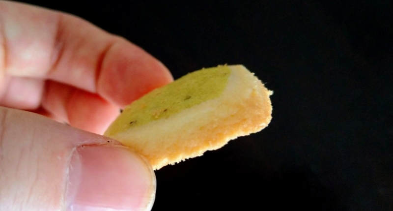 商品情報:刻んだピスタチオを生地に練り込み、バニラの生地と合わせて、2層にさくっと焼き上げました。(商品パッケージより)
