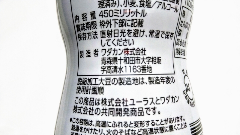 オリジナル商品なのかなと思って確かめたら、醤油メーカーのワダカンが製造してるので味も問題なさそうです。