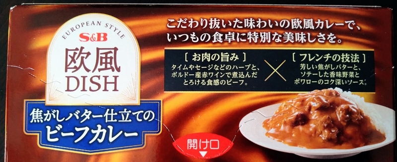 今日のレトルトカレーはS&B「欧風DISH 焦がしバター仕立てビーフカレー」中辛です。