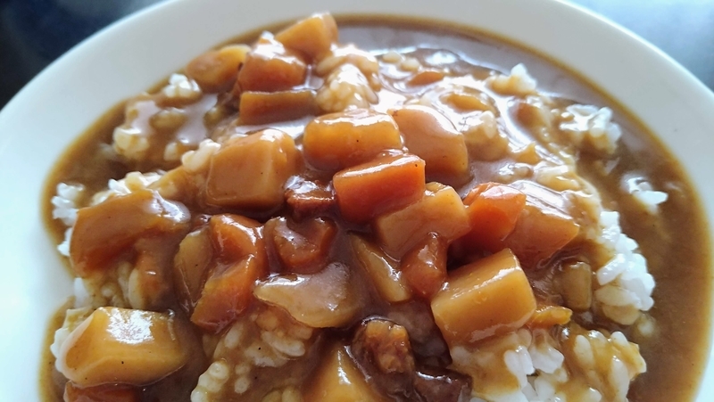 カレーソースがご飯に染みていく感じから、とろみ感はそんなに強くないのが分かります。