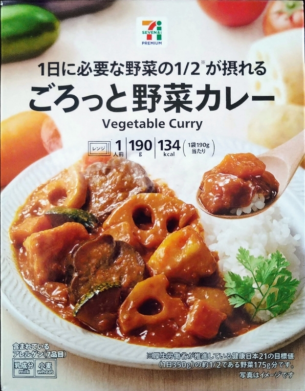 セブンプレミアムの「1日に必要な野菜の1/2が摂れる ごろっと野菜カレー」は野菜がたっぷり摂れて見た目も食べ応えも大満足でした。
